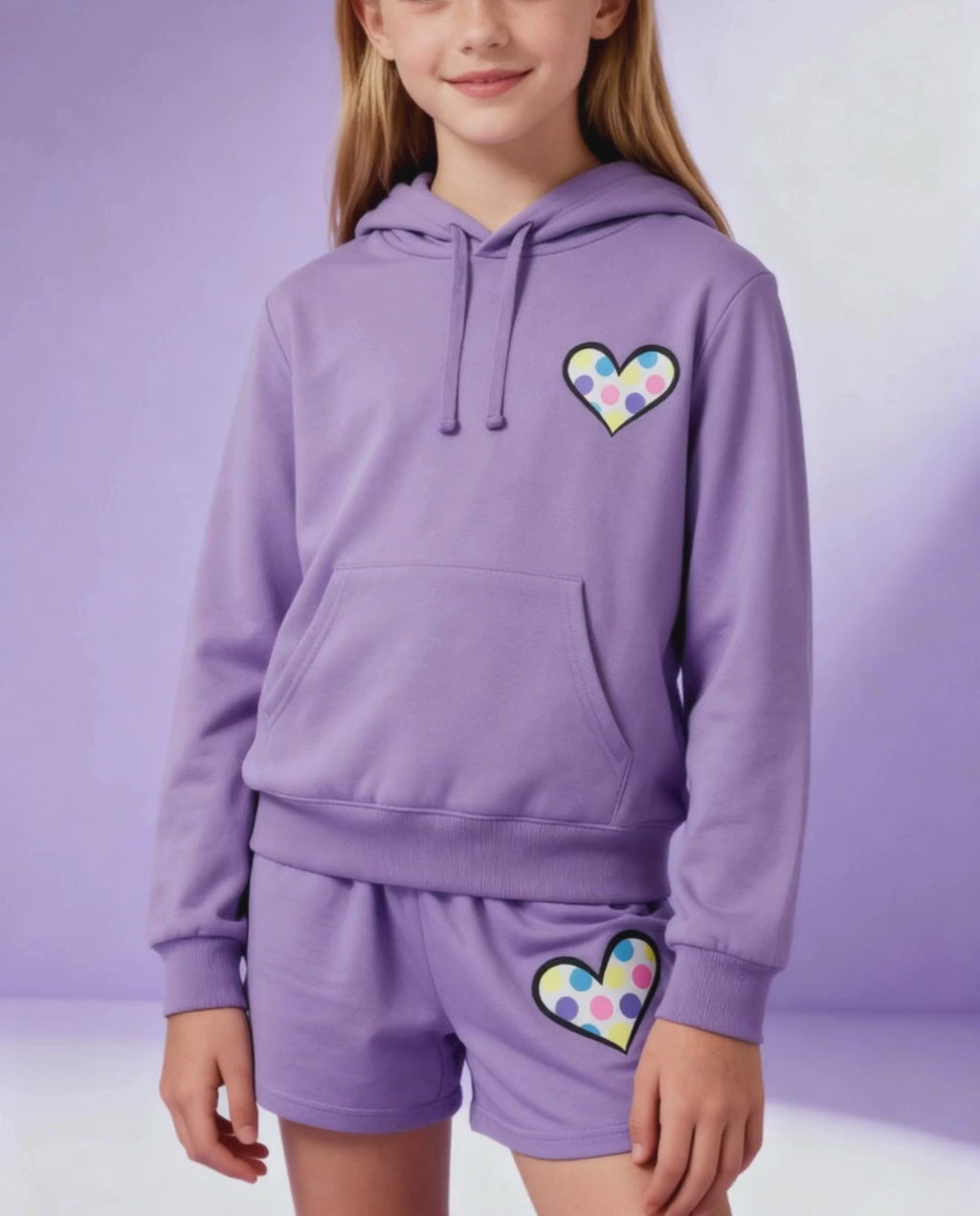 Elevate your casual wardrobe with this striking hooded long sleeve in violet. The playful hearts toss pattern adds visual interest and personality to an everyday essential. Crafted for comfort and versatility, this piece transitions seamlessly from relaxed weekends to layered styling. The hood provides practical coverage while the long sleeves offer year-round wearability. Perfect for those who appreciate thoughtful design details that don't compromise on comfort or quality.