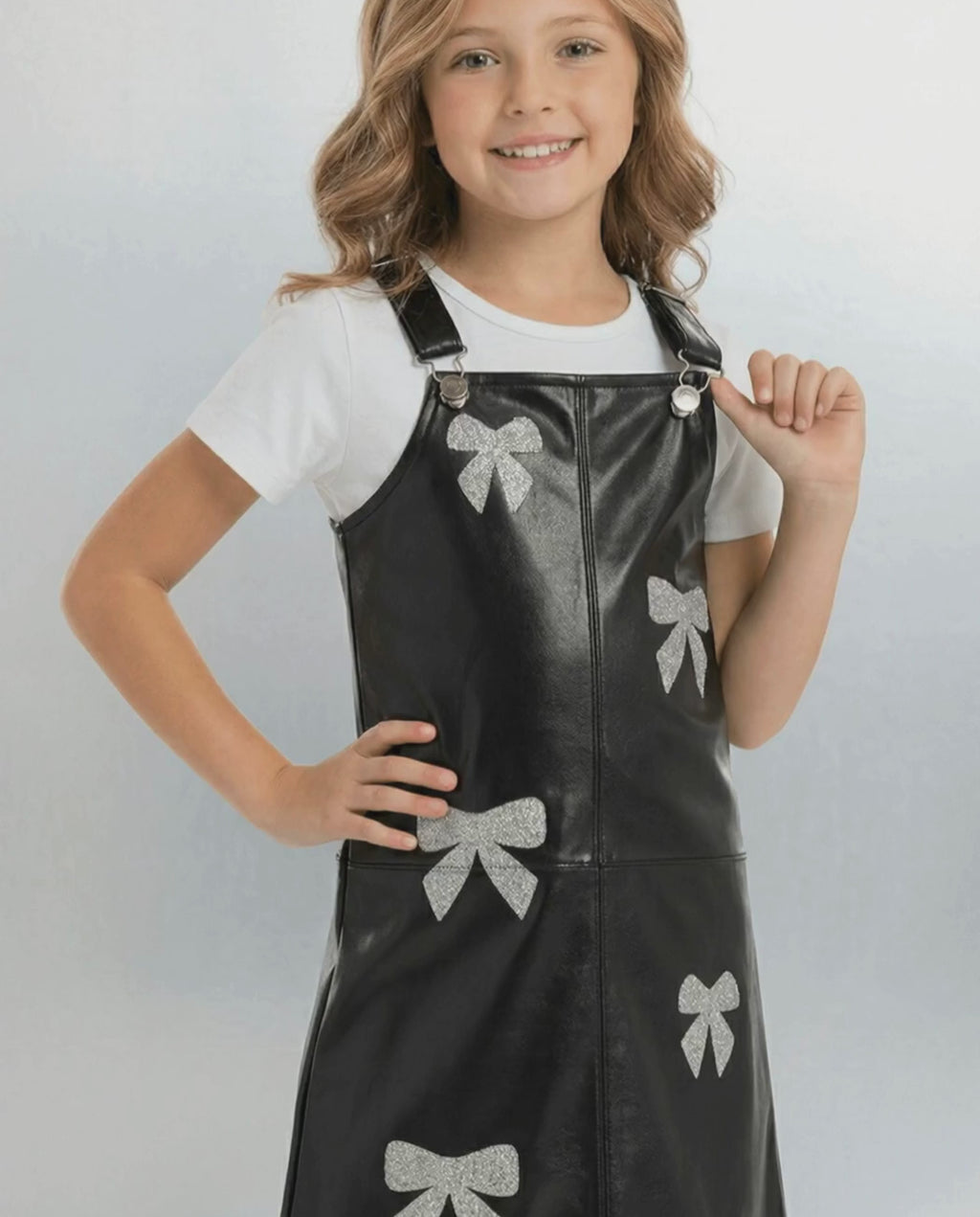 Bow Obsessed Fashionistas! This MIA NY black jumper is covered with rhinestone bows has adjustable straps. This is perfect layered over a tee.